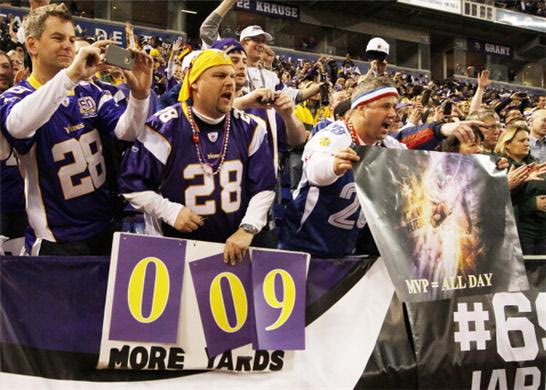 Ο Peterson σε ένα συγκλονιστικό τελευταίο run του έσυρε τρεις Packers μέχρι το red zone τους, φτάνοντας ο ίδιος 9 μόλις γυάρδες από το επικό ρεκόρ, αλλά επιτρέποντας στον kicker του να πάρει το παιχνίδι στη λήξη. Η Μινεσότα είναι μια ομάδα που απέναντι στη λογική του προγράμματός της κατάφερε να βρεθεί στα πλέι-οφ, ο δε Adrian Peterson (λογικά) θα κερδίσει πανάξια πλέον το βραβείο του MVP από τον Peyton Manning.