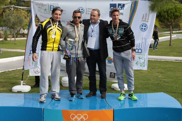 Ο δημαρχος Γρ Κωνσταντέλλος και οι νικητές στη γενική κατάταξη ανδρών Γιώργος Δανιήλ, Γιώργος Αλυφαντής και Σπύρος Καραθανάσης