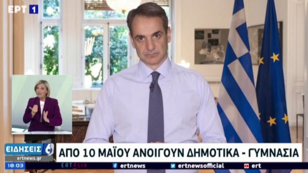 Ο κ. Μητσοτάκης προανήγγειλε το άνοιγμα της εστίασης και των υπόλοιπων σχολικών βαθμίδων, αλλά και την άρση απαγόρευσης διαπεριφερειακών μετακινήσεων μαζι με το άνοιγμα του τουρισμου στα μέσα Μαϊου, ζητώντας από τους πολίτες να κάνουν μία ακόμη θυσία, γιορτάζοντας και αυτό το Πάσχα στο σπίτι και θελοντας να προσφέρει χρονοδιάγραμμα επιστροφής στην κανονικότητα.