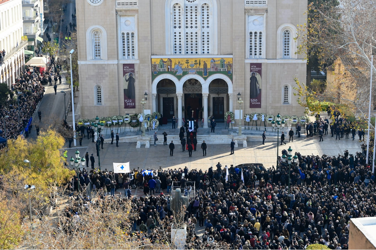 Πλήθος κόσμου συγκεντρώθηκε από νωρίς το πρωί στη Μητρόπολη Αθηνών για να πει το ύστατο χαίρε και να αποτίσει φόρο τιμής στον χρυσό Ολυμπιονίκη στην ιστιοπλοΐα.