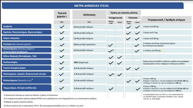 Ως προς τη μεταφορά πολιτών με ταξί, συνεχίζεται η εφαρμογή του κανόνα, ο οδηγός και ένας επιβάτης, με τις γνωστές εξαιρέσεις μεταφοράς γονέα με ανήλικα τέκνα ή συνοδείας ατόμου για ιατρικούς λόγους.