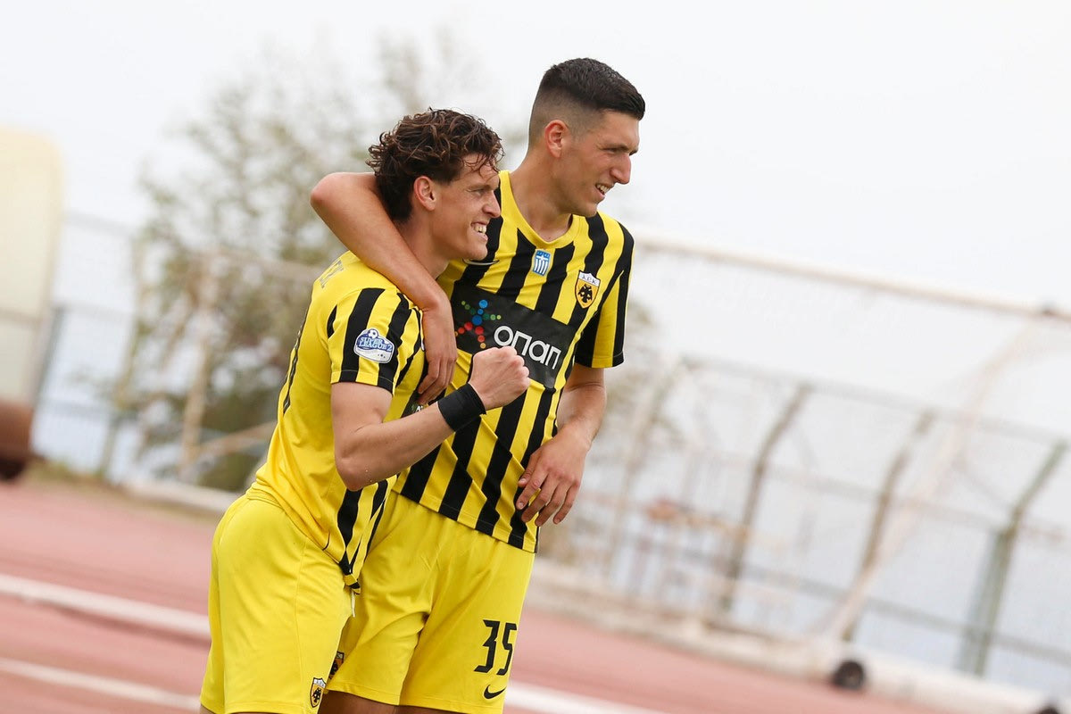 Οι Γιούσης και Κοσίδης πανηγυρίζουν γκολ της ΑΕΚ Β' απέναντι στην Επισκοπή | 16 Απριλίου 2022