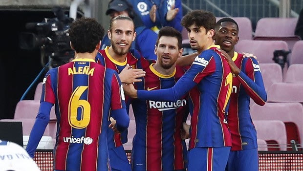 Οι παίκτες της Μπαρτσελόνα πανηγυρίζουν γκολ απέναντι στην Οσασούνα