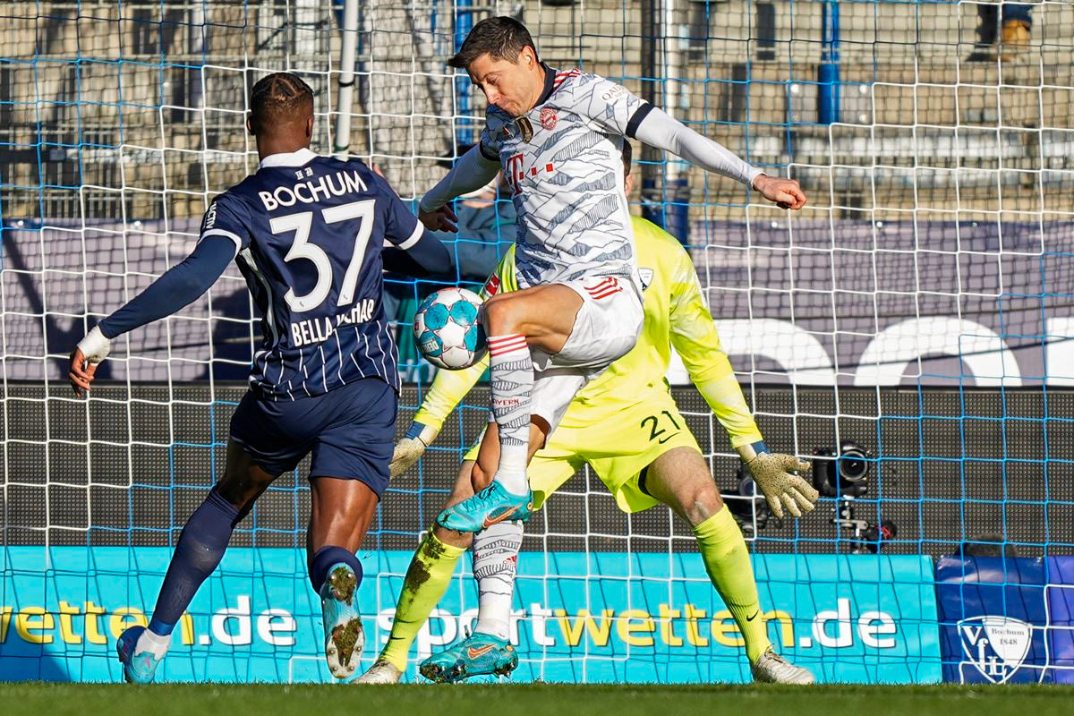 Ο Ρόμπερτ Λεβαντόβσκι της Μπάγερν μονομαχεί με τον Αρμέλ Μπέλα Κοτσάπ της Μπόχουμ για την Bundesliga 2021-2022 στο "Βονόβια Ρουρστάντιον", Μπόχουμ | Σάββατο 12 Φεβρουαρίου 2022