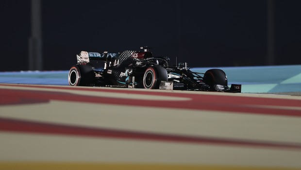 Ο Λιούις Χάμιλτον οδηγεί τη Mercedes του στην πίστα του Μπαχρέιν.