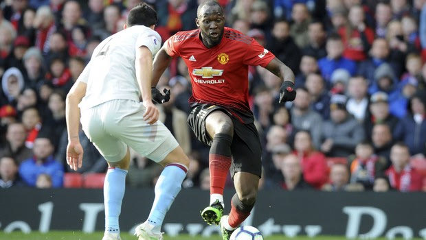 Manchester United's Romelu Lukaku vies for the ball with West Ham's Fabian Balbuena, left, during the English Premier League soccer match between Manchester United and West Ham United at Old Trafford in Manchester, England, Saturday, April 13, 2019. (AP Photo/Rui Vieira)