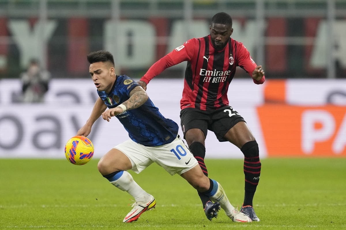 Ο Λαουτάρο Μαρτίνες της Ίντερ μονομαχεί με τον Φικάγιο Τομόρι της Μίλαν για τη Serie A 2021-2022 στο "Τζιουζέπε Μεάτσα", Μιλάνο | Τρίτη 1 Μαρτίου 2022
