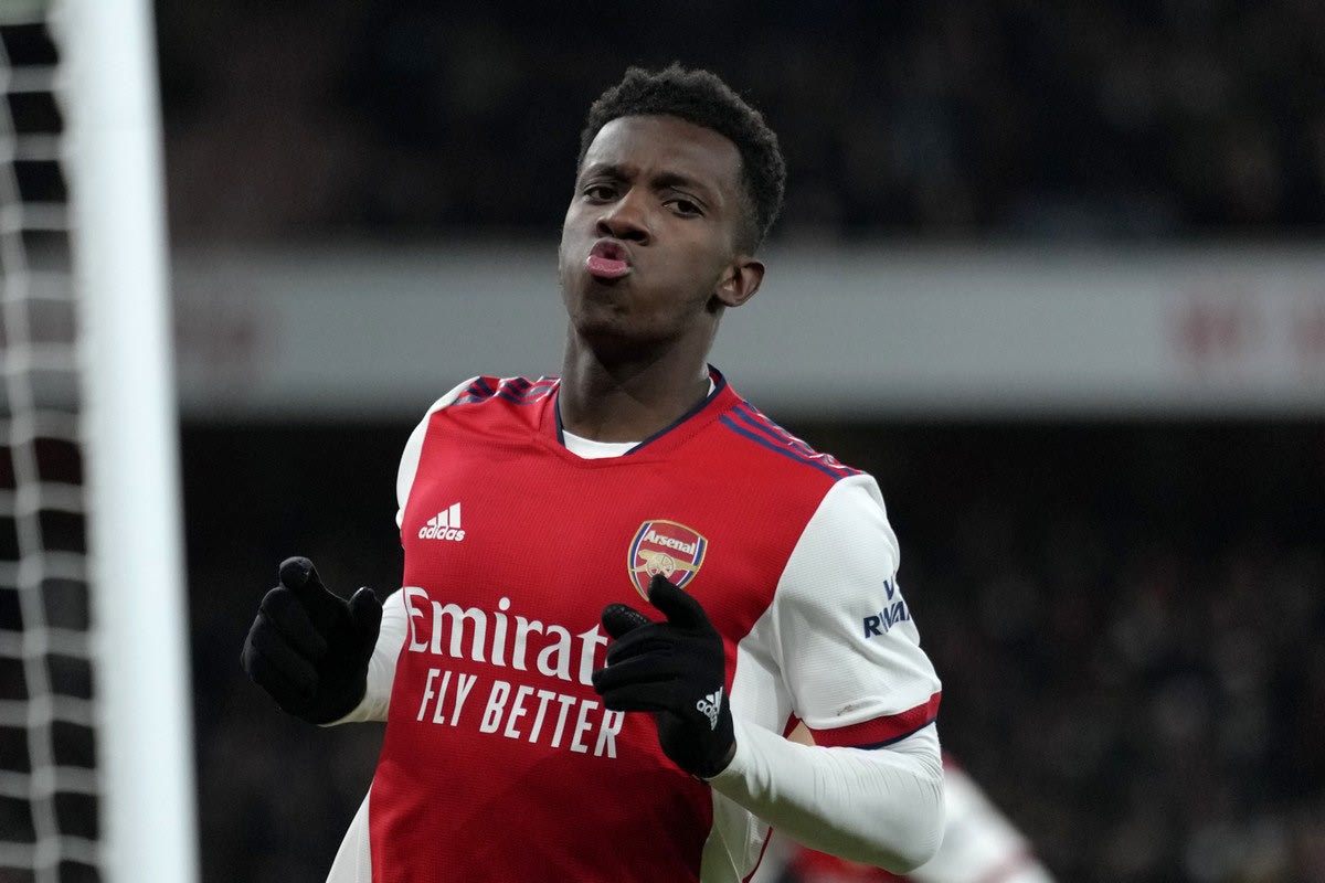Ο Έντι Ενκετιά πανηγυρίζει με τη φανέλα της Άρσεναλ