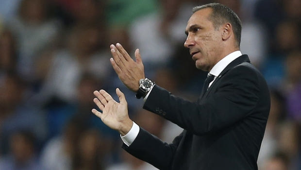 APOEL Nicosia coach Giorgos Donis reacts during a Champions League group H soccer match between Real Madrid and Apoel Nicosia at the Santiago Bernabeu stadium in Madrid, Spain, Wednesday, Sept. 13, 2017. (AP Photo/Francisco Seco)