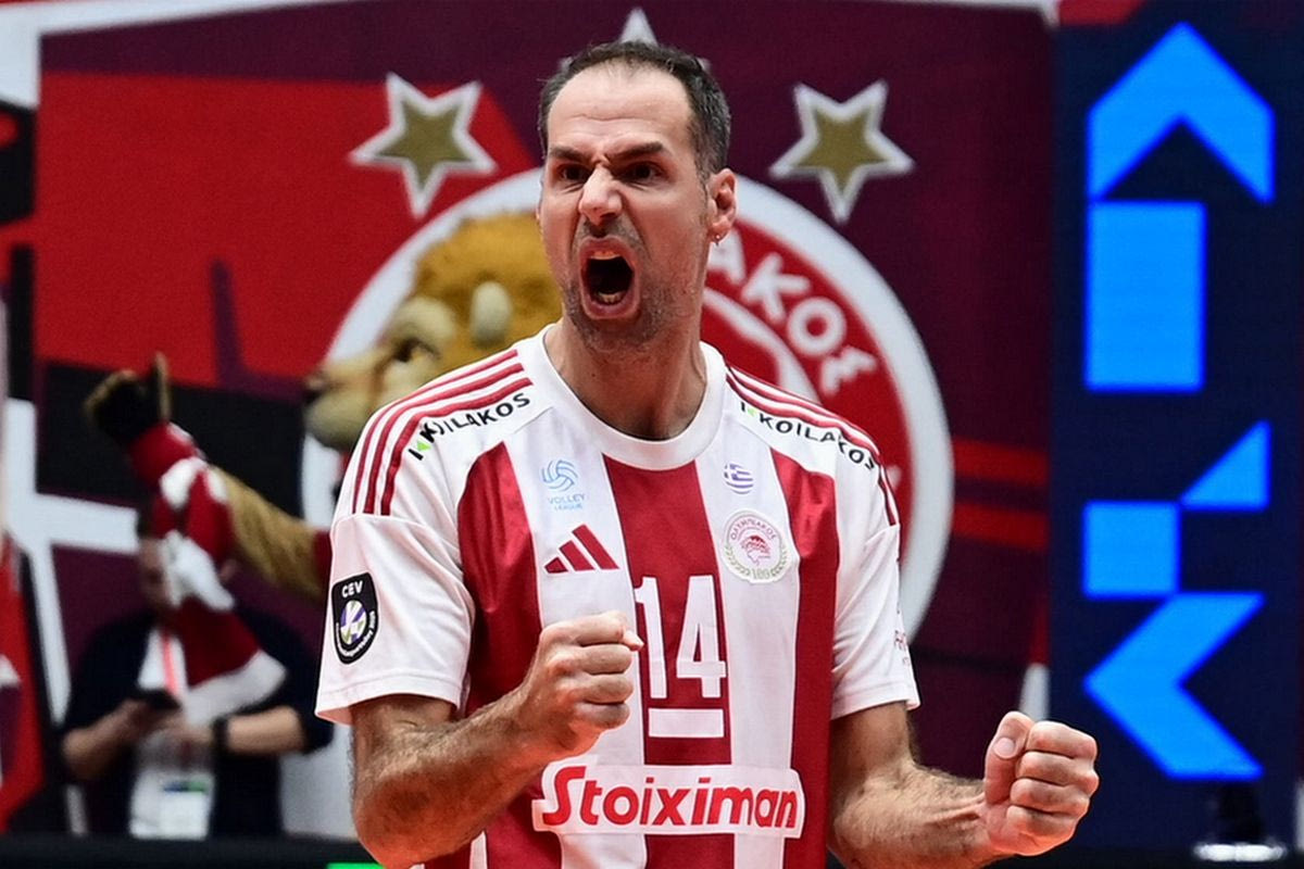 Ο Ντράγκαν Τράβιτσα με τη φανέλα του Ολυμπιακού στον ματς κόντρα στη Φενέρμπαχτσε για το Champions League βόλεϊ ανδρών