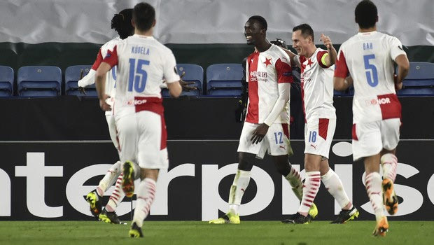 Οι παίκτες της Σλάβια Πράγας πανηγυρίζουν γκολ κόντρα στην Λέστερ στο Europa League