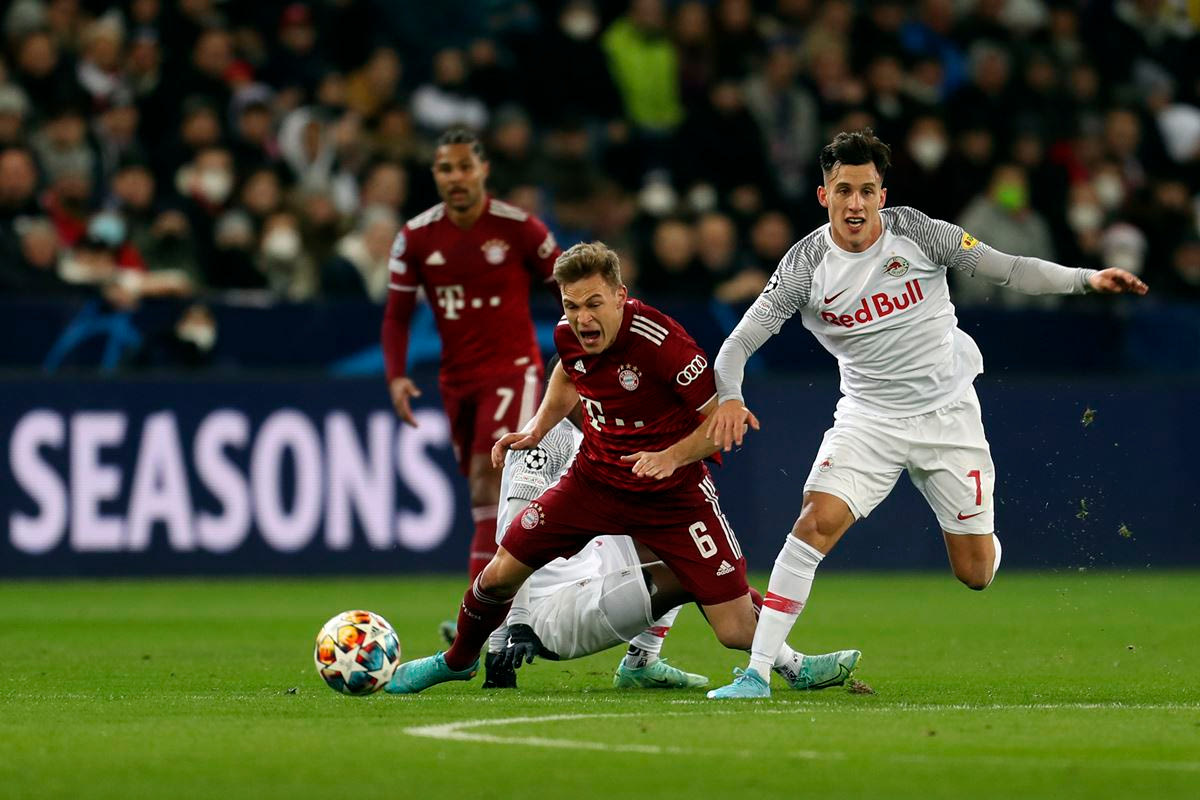 Ο Γιόσουα Κίμιχ της Μπάγερν μονομαχεί με τον Νικολάς Καπάλντο της Ζάλτσμπουργκ για τη φάση των 16 του Champions League 2021-2022 στη "Ρεντ Μπουλ Αρένα", Ζάλτσμπουργκ | Τετάρτη 16 Φεβρουαρίου 2022