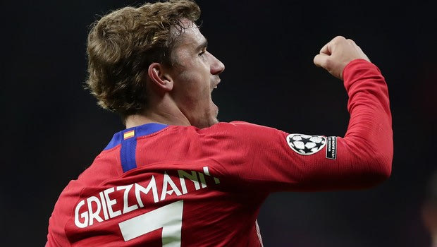 Atletico Antoine Griezmann celebrates after scoring his side's second goal during the Group A Champions League soccer match between Atletico Madrid and Borussia Dortmund at the Wanda Metropolitano stadium in Madrid, Spain, Tuesday, Nov. 6, 2018. (AP Photo/Manu Fernandez)