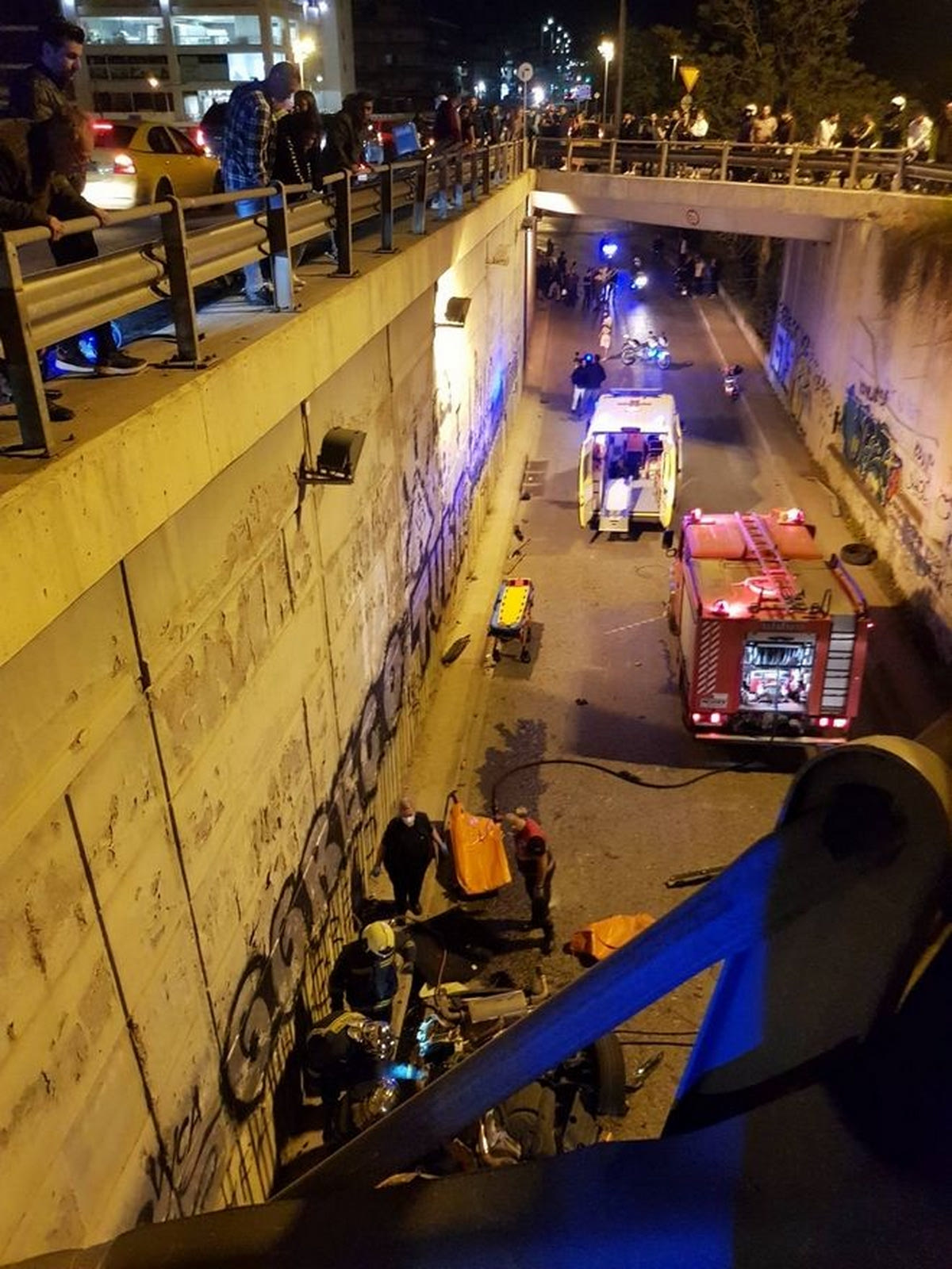 Σύμφωνα με αυτόπτες μάρτυρες, ο οδηγός του αυτοκινήτου φέρεται να έτρεχε με μεγάλη ταχύτητα πάνω στην λεωφόρο Κύμης, με αποτέλεσμα μετά από μία ανεξέλεγκτη πορεία να πέσει πάνω στις προστατευτικές μπάρες της γέφυρας και να βρεθεί αναποδογυρισμένο στην λεωφόρο Καποδιστρίου που περνάει ακριβώς από κάτω.