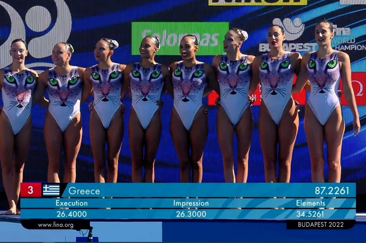 Πολύ ψηλά στο παγκόσμιο στερέωμα ανέβηκαν οι εκπρόσωποι της ελληνικής Καλλιτεχνικής Κολύμβησης και στον τελικό του Τεχνικού Ομαδικού του 19ου Παγκόσμιου πρωταθλήματος υγρού στίβου στη Βουδαπέστη. Η Εθνική μας ομάδα κατέκτησε την 5η θέση, την καλύτερη που έχει πάρει ποτέ στο συγκεκριμένο αγώνισμα στην ιστορία της σε παγκόσμια πρωταθλήματα.