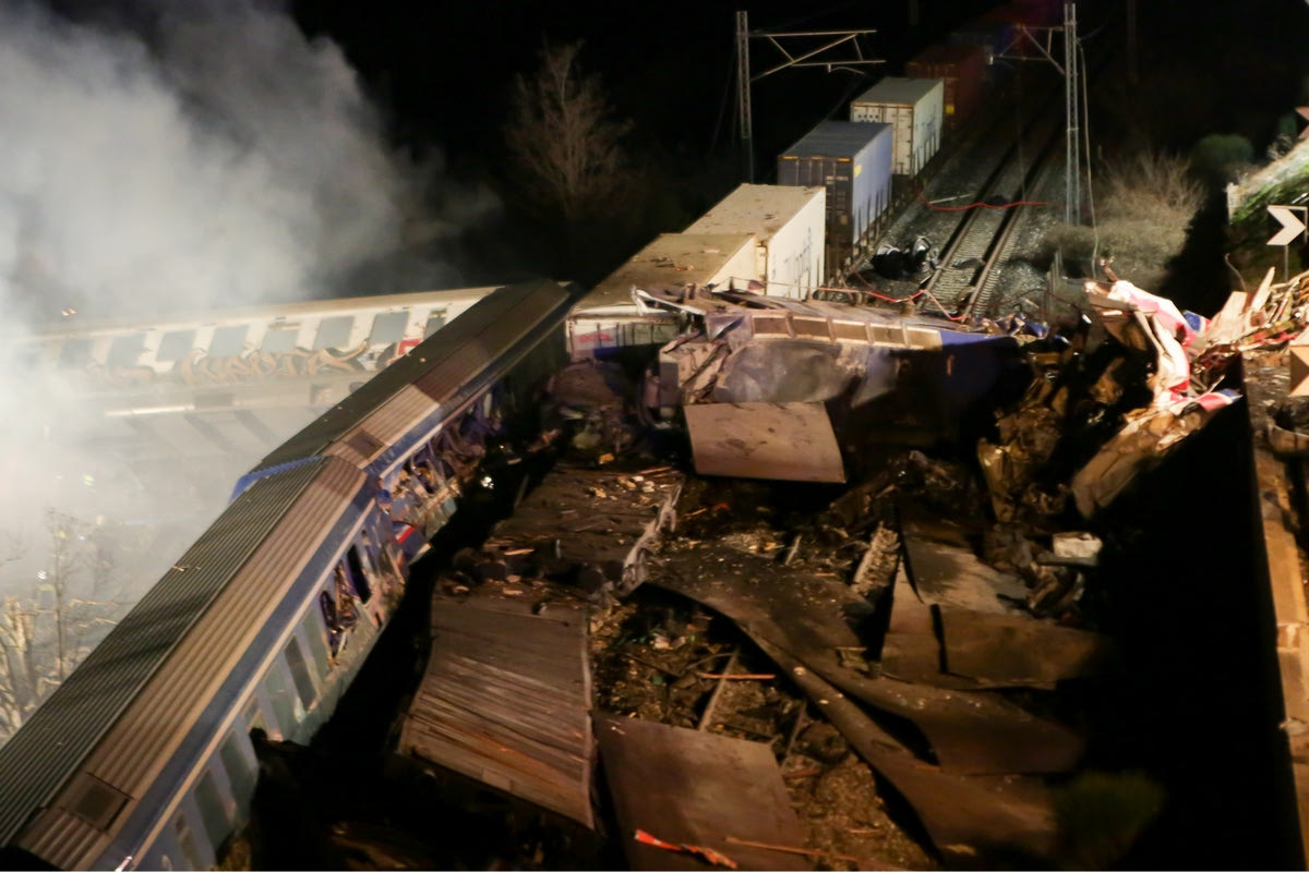 Φωτογραφία από τη σύγκρουση των τρένων στα Τέμπη