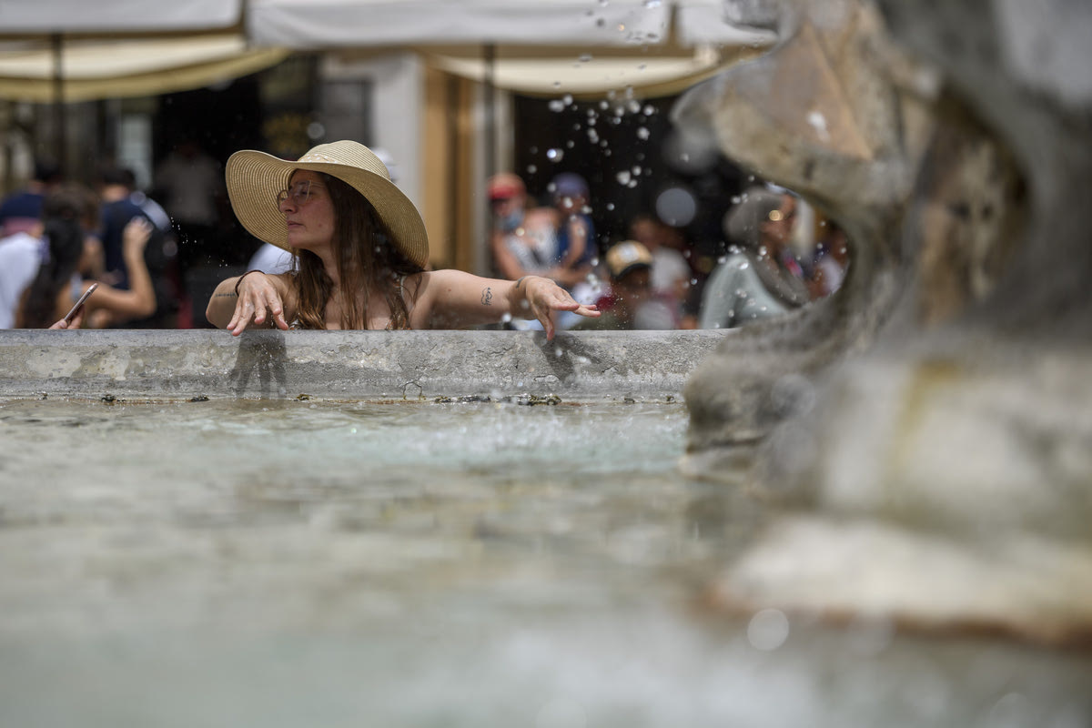 ROME, ITALY - AUGUST 10: People refresh themself because off high temperatures around 39 degrees Celsius, at Pantheon, on August 10, 2021 in Rome, Italy. With the arrival of the 'Lucifer' anticyclone from Africa, Italy braces for the hottest week of summer. The soaring temperatures have led Italy's civil protection agency to warn of increased risks of wildfires. (Photo by Antonio Masiello/Getty Images)