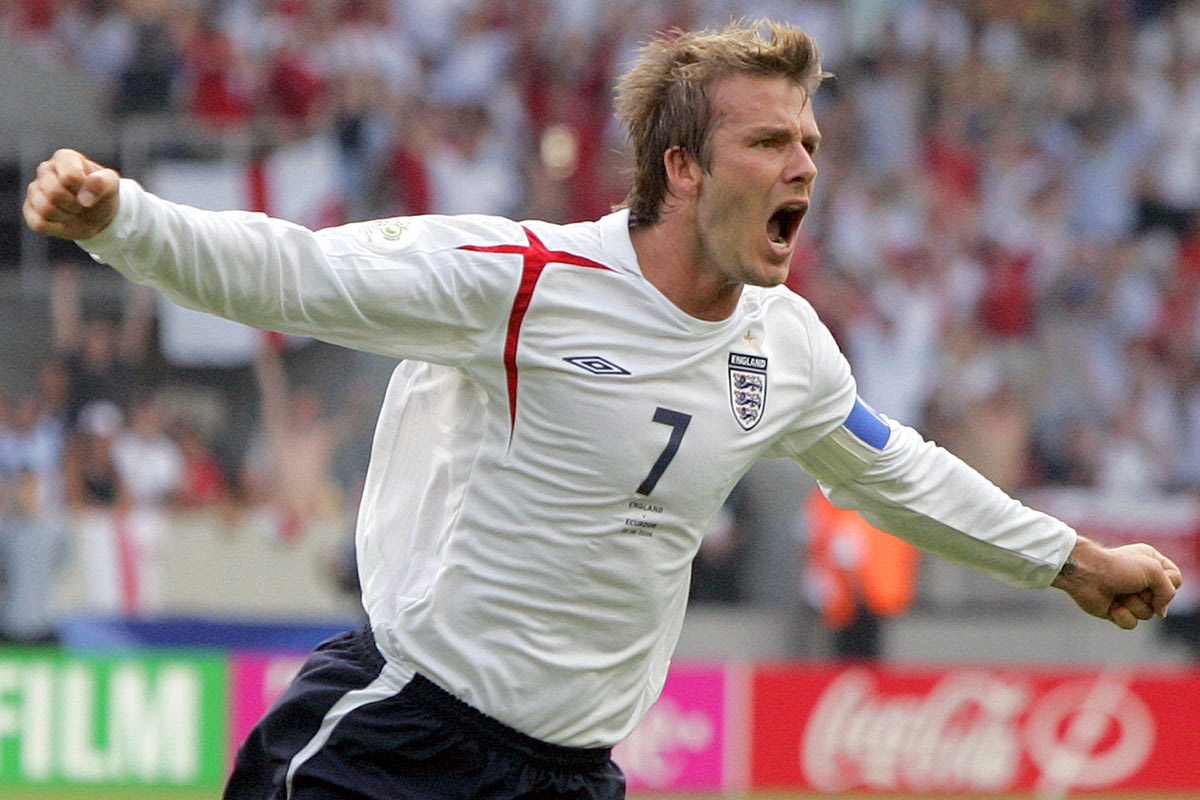 Ο Μπέκαμ με τη φανέλα της Εθνικής Αγγλίας πανηγυρίζει το γκολ του κόντρα στη Γερμανία στη φάση των "16" του Μουντιάλ 2006