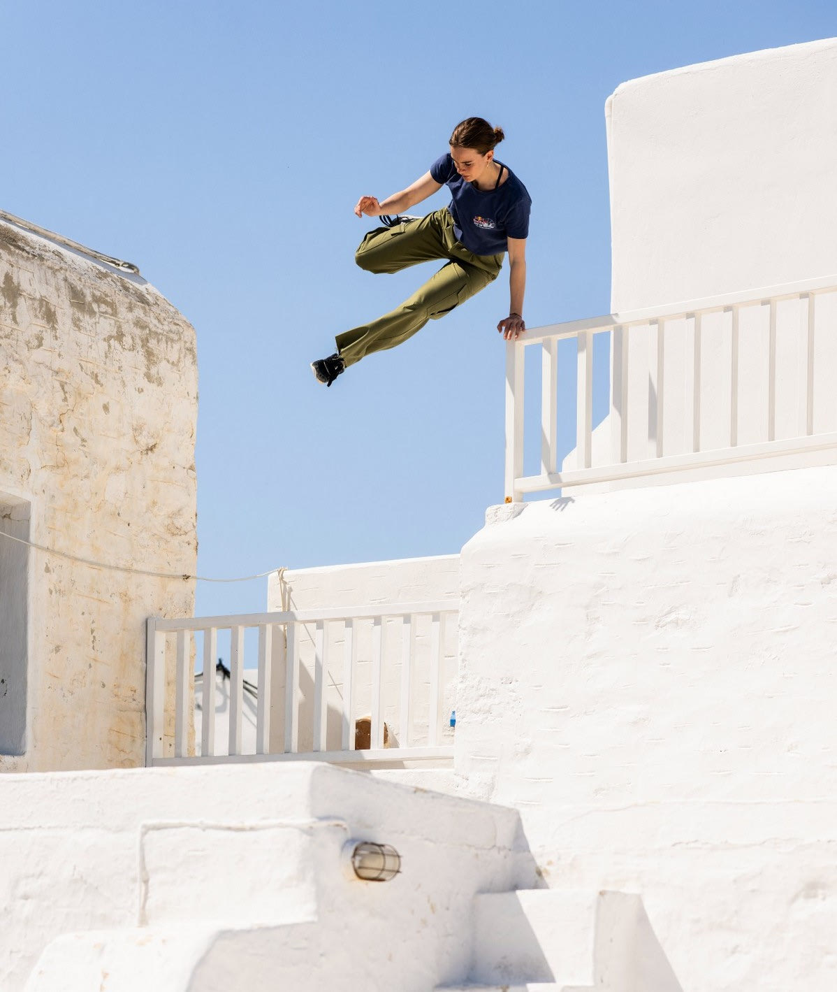 Η “πεταλούδα του Αιγαίου” για 4 ημέρες, από τις 9 μέχρι τις 12 Ιουνίου, θα μεταμορφωθεί σε μια μεγάλη freerunning πλατφόρμα με τα πιο όμορφα και γραφικά σημεία της Χώρας να μετατρέπονται σε ιδιαίτερες «πίστες». 16 από τους καλύτερους freerunners παγκοσμίως θα συναντηθούν στο νησί για να αγωνιστούν, αλλά κυρίως να γιορτάσουν το θεαματικό άθλημα του freerunning.