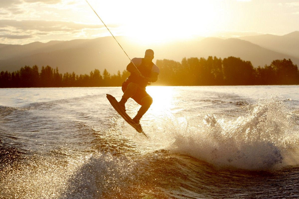 "A wakeboarder catches air during a sunrise session on Lake Pend Oreille, near Sandpoint, Idaho" Getty Images