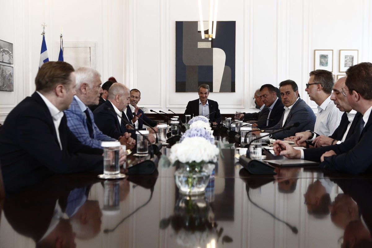 Ξεκίνησε η σύσκεψη των Μητσοτάκη – Τσέφεριν με Μελισσανίδη, Μαρινάκη, Αλαφούζο