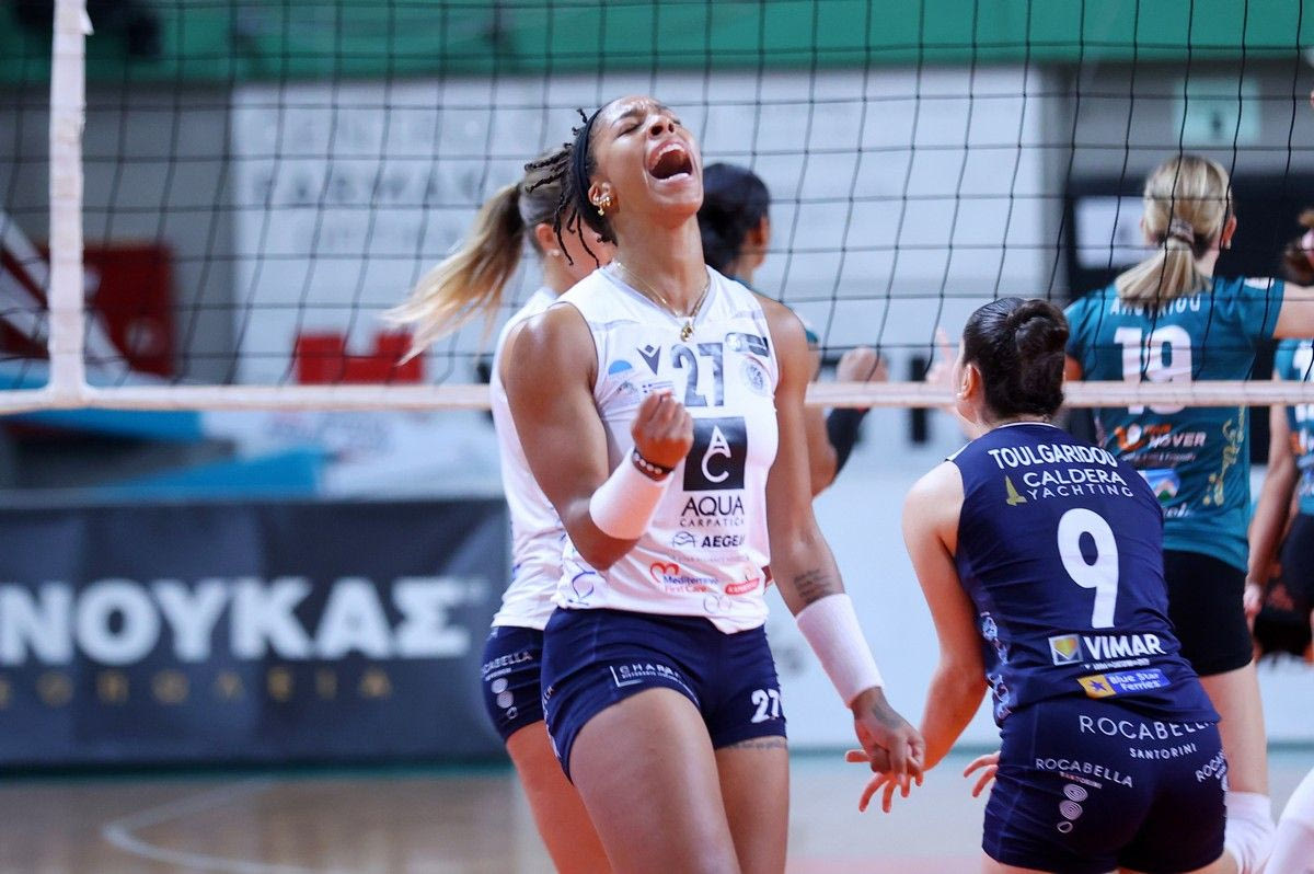 Α.Ο. ΘΗΡΑΣ (Μανώλης Σκουλικάρης): Αντσάντε 3 (2/6 επ., 1 άσσος), Πάβιτσιτς 15 (12/35 επ., 2 άσσοι, 1 μπλοκ, 60% υπ. – 27% άριστες), Μάασε 24 (22/59 επ., 2 άσσοι), Δημητριάδη 7 (5/14 επ., 1 άσσος, 1 μπλοκ), Τσιόγκα 16 (9/18 επ., 1 άσσος, 6 μπλοκ), Άμποτ 16 (14/39 επ., 1 άσσος, 1 μπλοκ, 52% υπ. – 21% άριστες) / τουλγαρίδου (λ, 43% υπ. – 7% άριστες), Σαουλίδου (λ), Μπαρμπαλιού, Θωμαΐδου, Γενιτσαρίδη, Κεραμιτσοπούλου 1 (1/1 επ.).