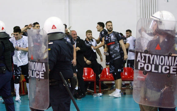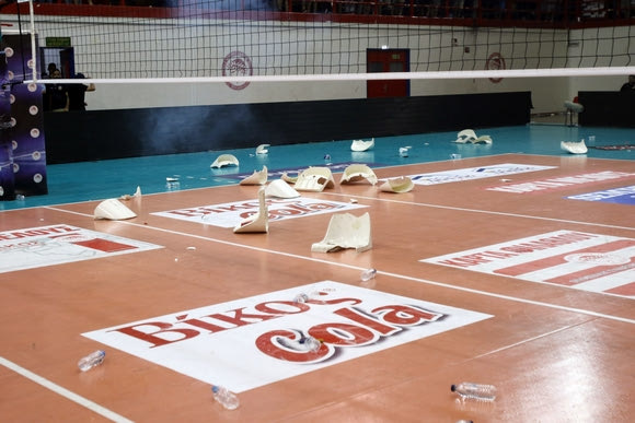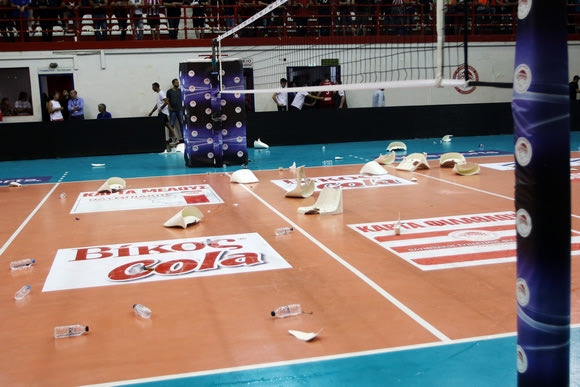 Η κατάκτηση του πρωταθλήματος στη Volley League από τον ΠΑΟΚ συνοδεύτηκε από ρίψη αντικειμένων στον αγωνιστικό χώρο, του “Μελίνα Μερκούρη”. Οι οπαδοί του Ολυμπιακού πέταξαν αναψυκτικά, αντικείμενα και καρεκλάκια από τις εξέδρες, με τις δυνάμεις των ΜΑΤ να επεμβαίνουν για να προστατεύσουν τους παίκτες και τα μέλη της αποστολής του ΠΑΟΚ.