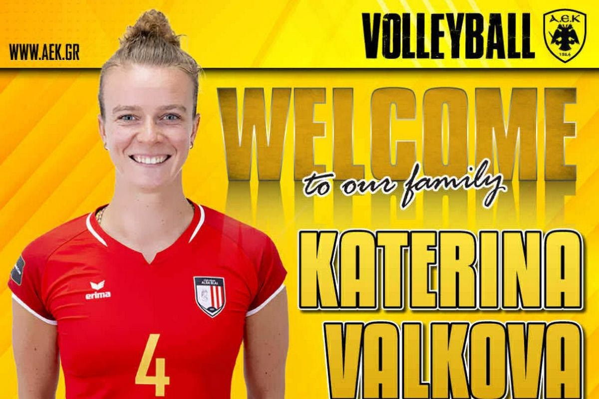 “Η ΑΕΚ βρίσκεται στην ευχάριστη θέση να ανακοινώσει την έναρξη της συνεργασίας της με την Κατερίνα Βάλκοβα. Η 29χρονη (06/02/1996) διεθνής Τσέχα πασαδόρος, ύψους 1,77 μ., εντάσσεται στο δυναμικό της γυναικείας ομάδας Βόλεϊ του Συλλόγου.