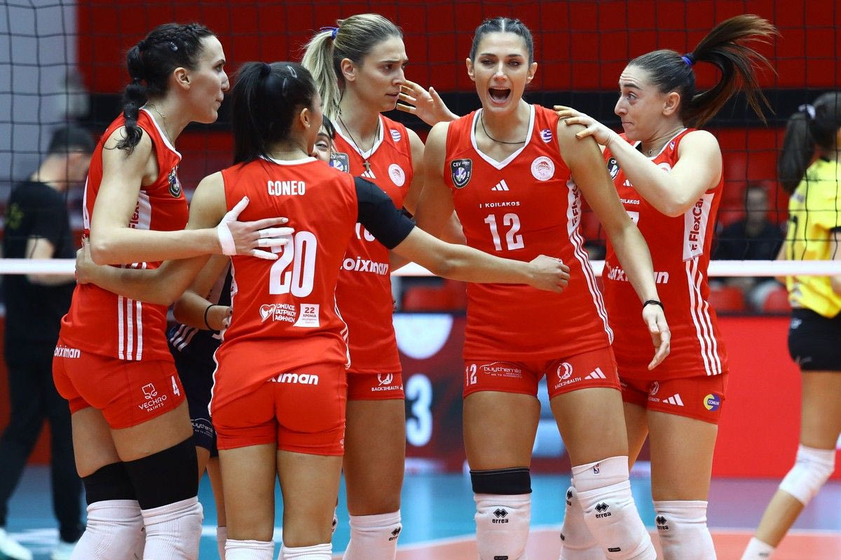 Ο Ολυμπιακός αν και έχασε το πρώτο σετ, με κορυφαίες τις Κούμπουρα και Κόνεο επικράτησε της ΑΕΚ με 3-1 σετ και διατηρήθηκε στην κορυφή της Volley League Γυναικών.
