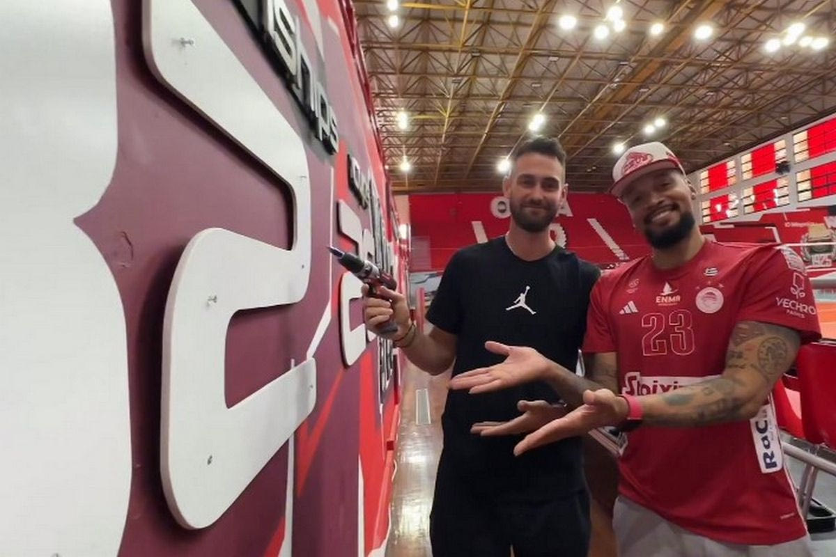 Οι νταμπλούχοι Ελλάδας με το τμήμα βόλεϊ του Ολυμπιακού, Ραφαήλ Κουμεντάκης και Σαλβαδόρ Ιντάλγκο, βρέθηκαν στον "Μελίνα Μερκούρη" και έκαναν "ανακαίνιση" στο κλειστό με τους φετινούς τίτλους που κατέκτησαν οι "ερυθρόλευκοι" σε Κύπελλο και Volley League ανδρών.