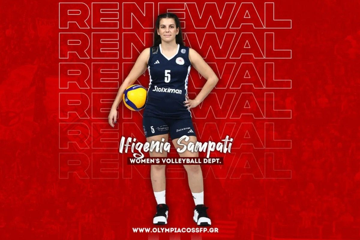“Ο ΟΛΥΜΠΙΑΚΟΣ Σ.Φ.Π. ανακοινώνει την ανανέωση της συνεργασίας του με την Ιφιγένεια Σαμπάτη. Η Ελληνίδα λίμπερο υπέγραψε το νέο της συμβόλαιο, μονοετούς διάρκειας και παραμένει στο ρόστερ της ομάδας βόλεϊ Γυναικών του συλλόγου.