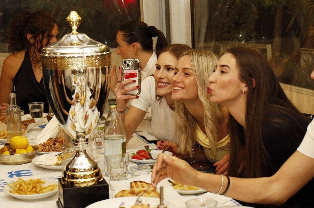 Η ομάδα βόλεϊ γυναικών του Ολυμπιακού γιόρτασε με ομαδικό δείπνο την κατάκτηση του εγχώριου τρεμπλ τη φετινή σεζόν, με τα τρία τρόπαια των “ερυθρόλευκων” να βρίσκονται σε πρώτο πλάνο.