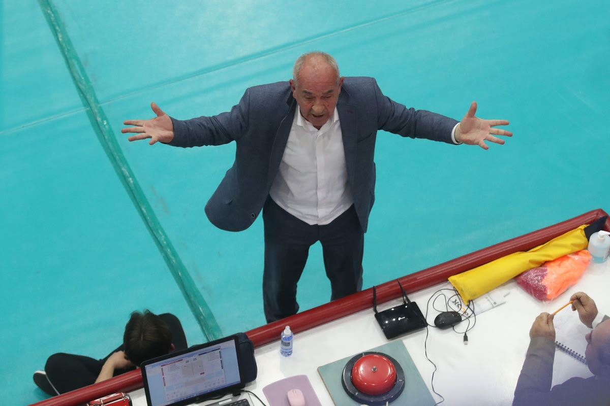 Ο team manager του ΠΑΟΚ, Αχιλλέας Τζήκας, σε στιγμιότυπο του αγώνα με τον Ολυμπιακό για τον τελικό της Volley League 2022-2023 στο "Μελίνα Μερκούρη" | Τρίτη 25 Απριλίου 2023