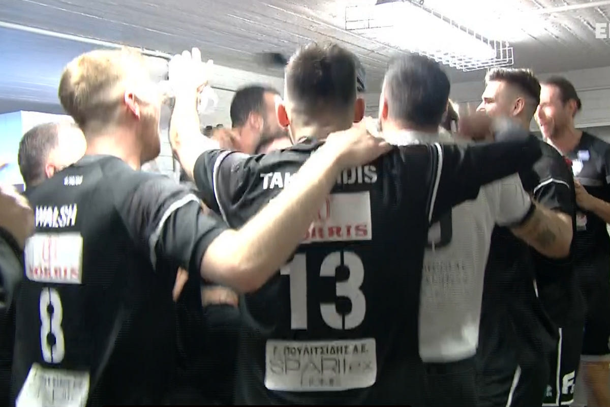 Οι παίκτες του ΠΑΟΚ έστησαν πάρτι στα αποδυτήρια του κλειστού της Καλαμάτας για την κατάκτηση του Κυπέλλου Ελλάδας στο βόλεϊ ανδρών.