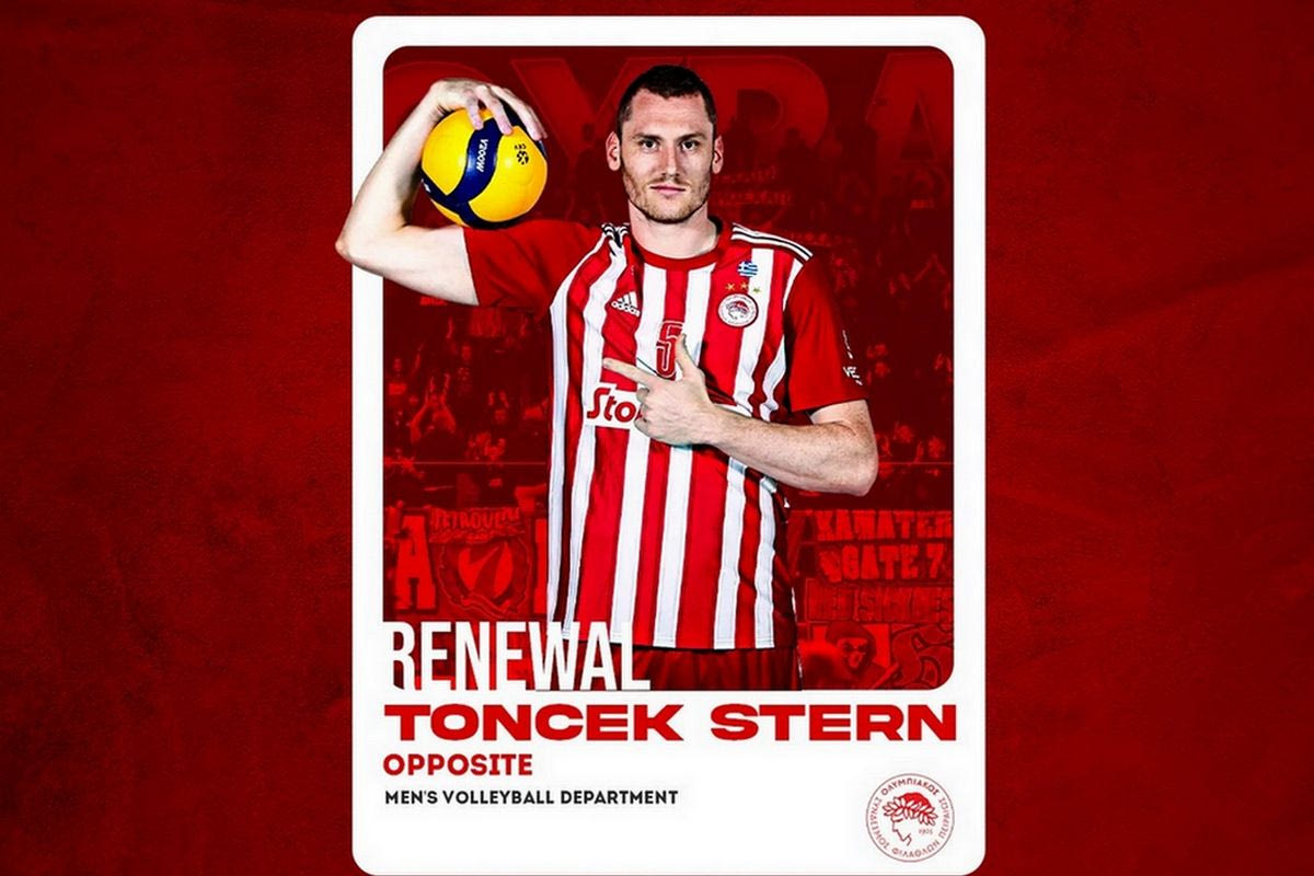 “Ο ΟΛΥΜΠΙΑΚΟΣ Σ.Φ.Π. ανακοινώνει την ανανέωση της συνεργασίας του με τον Τόνσεκ Στερν. Ο διεθνής Σλοβένος διαγώνιος υπέγραψε το νέο του συμβόλαιο και παραμένει στο ρόστερ της ομάδας βόλεϊ Ανδρών του συλλόγου.