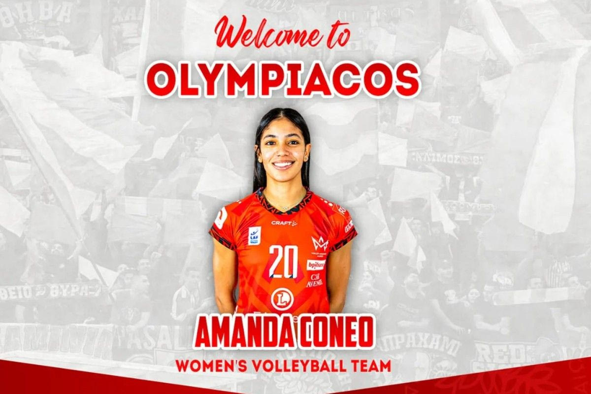 Ο Ολυμπιακός ανακοίνωσε την απόκτηση της 29χρονης Κολομβιανής ακραίας, Αμάντα Κονέο, για την ομάδα βόλεϊ γυναικών του συλλόγου.