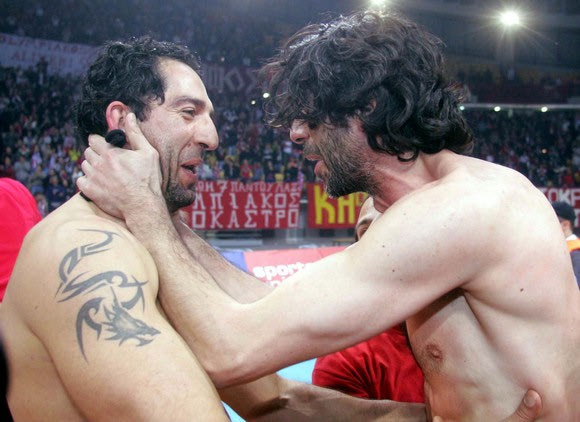 * Χρόνια αντίπαλοι σε ντέρμπι αιωνίων και η μοίρα το έφερε έτσι να πανηγυρίζουν μαζί την κατάκτηση του ευρωπαϊκού. Άκης Χατζηαντωνίου και Γιώργος Ντράγκοβιτς.