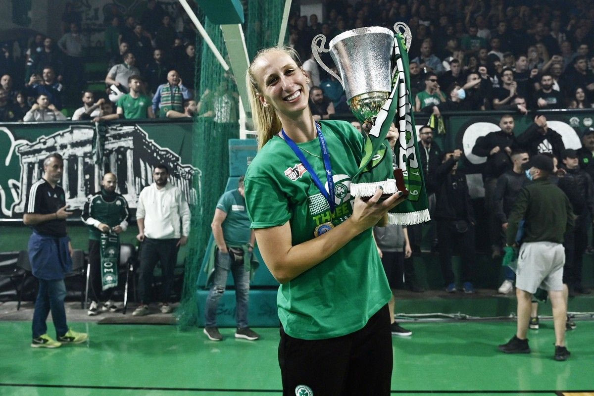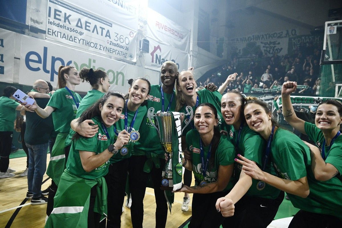 Τα κορίτσια του Παναθηναϊκού σήκωσαν την κούπα του πρωταθλήματος στο κατάμεστο κλειστό της Λεωφόρο και κάτω από αποθέωση από τους φίλους του τριφυλλιού και με τις ίδιες να αφιερώνουν τον τίτλο στην Ρούξι Ντουμιτρέσκου και την Πέννυ Ρόγκα.