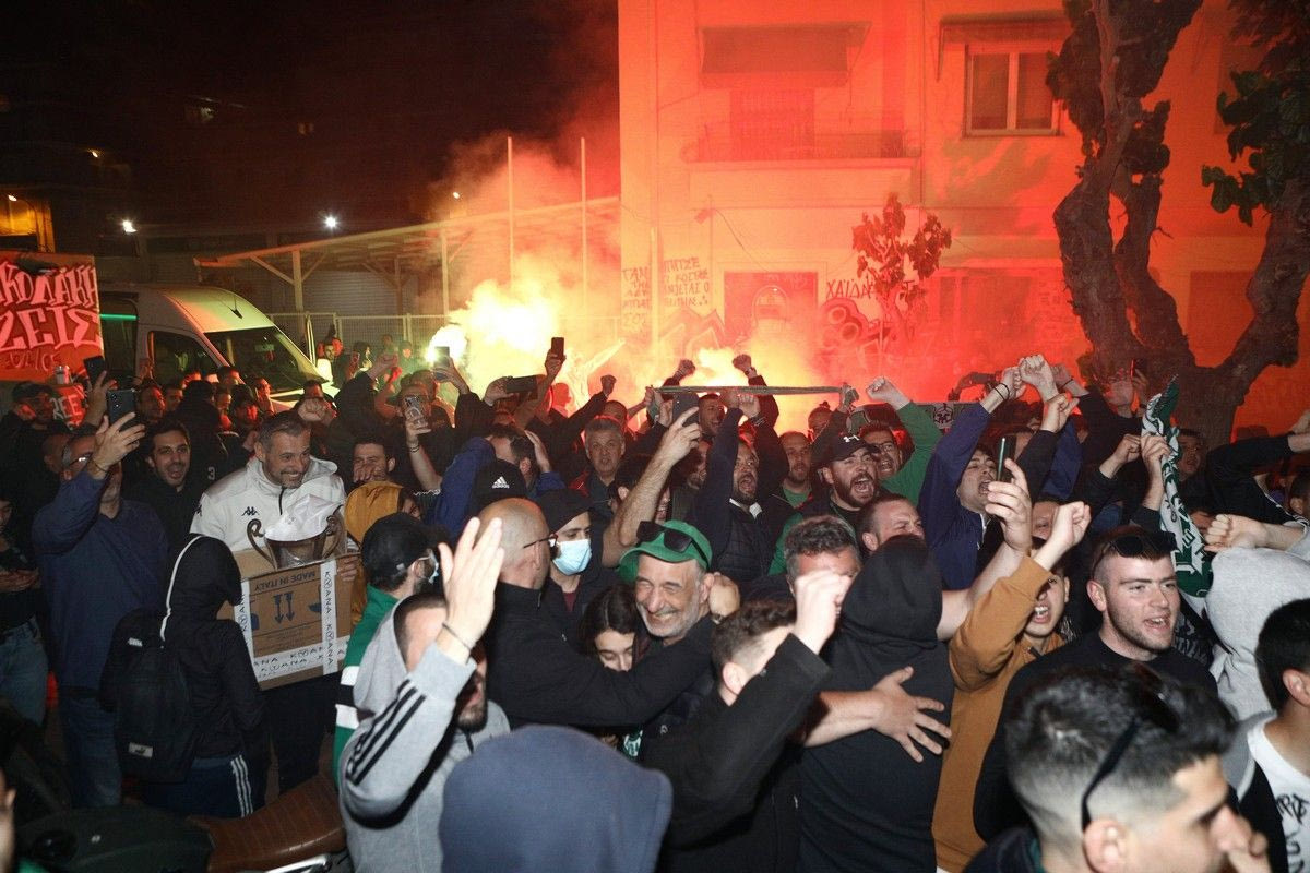 Έξω από το “κλειστό” η νύχτα έγινε μέρα κατά την άφιξη της πράσινης αποστολής με τα κορίτσια να απολαμβάνουν τις στιγμές.