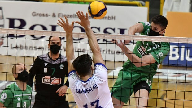 Σχεδόν όλοι οι παίκτες του Παναθηναϊκού φορούσαν ειδική προστατευτική μάσκα στον αγώνα με την Κηφισιά για τη Volley League. Μόνο ο Χαράλαμπος Ανδρεόπουλος δεν φορούσε.