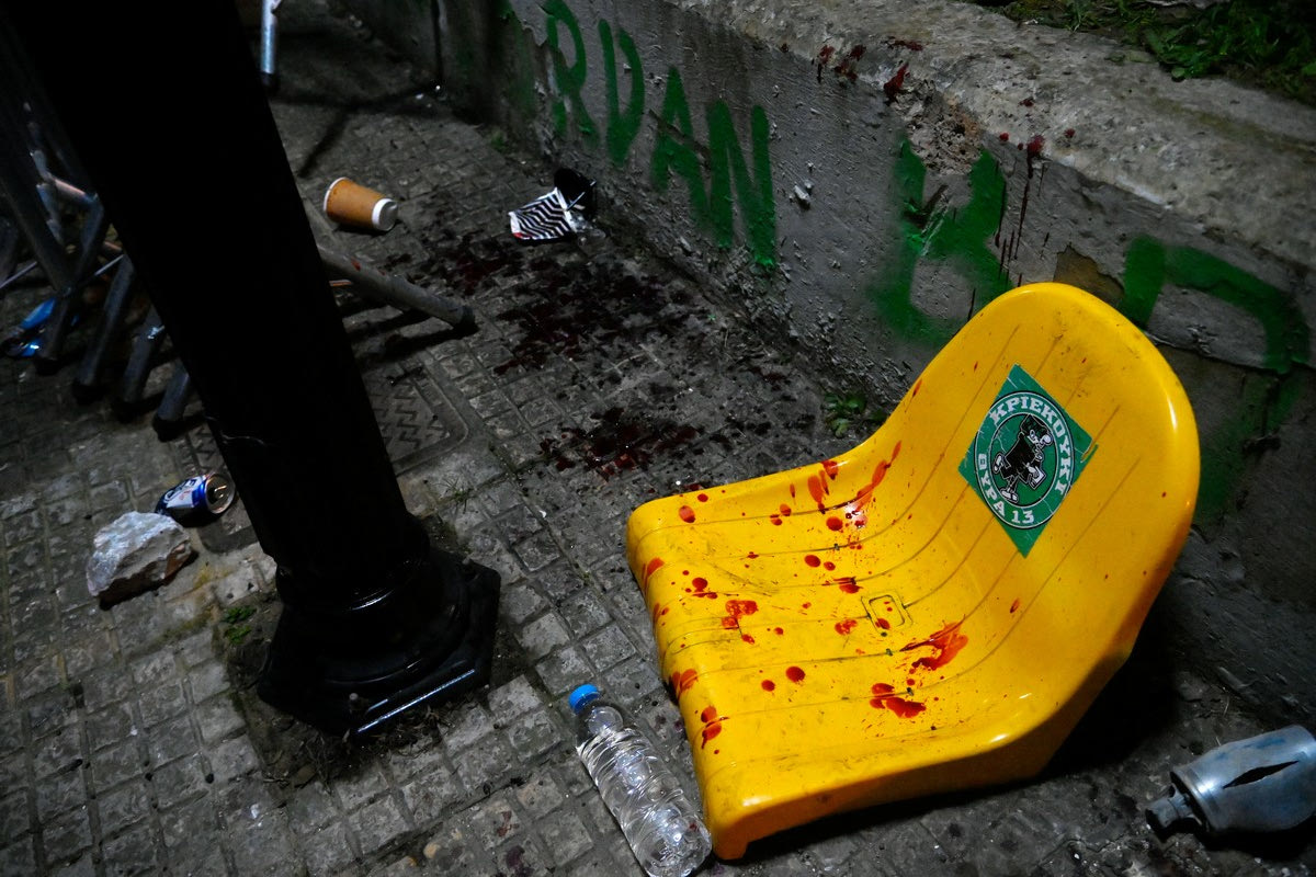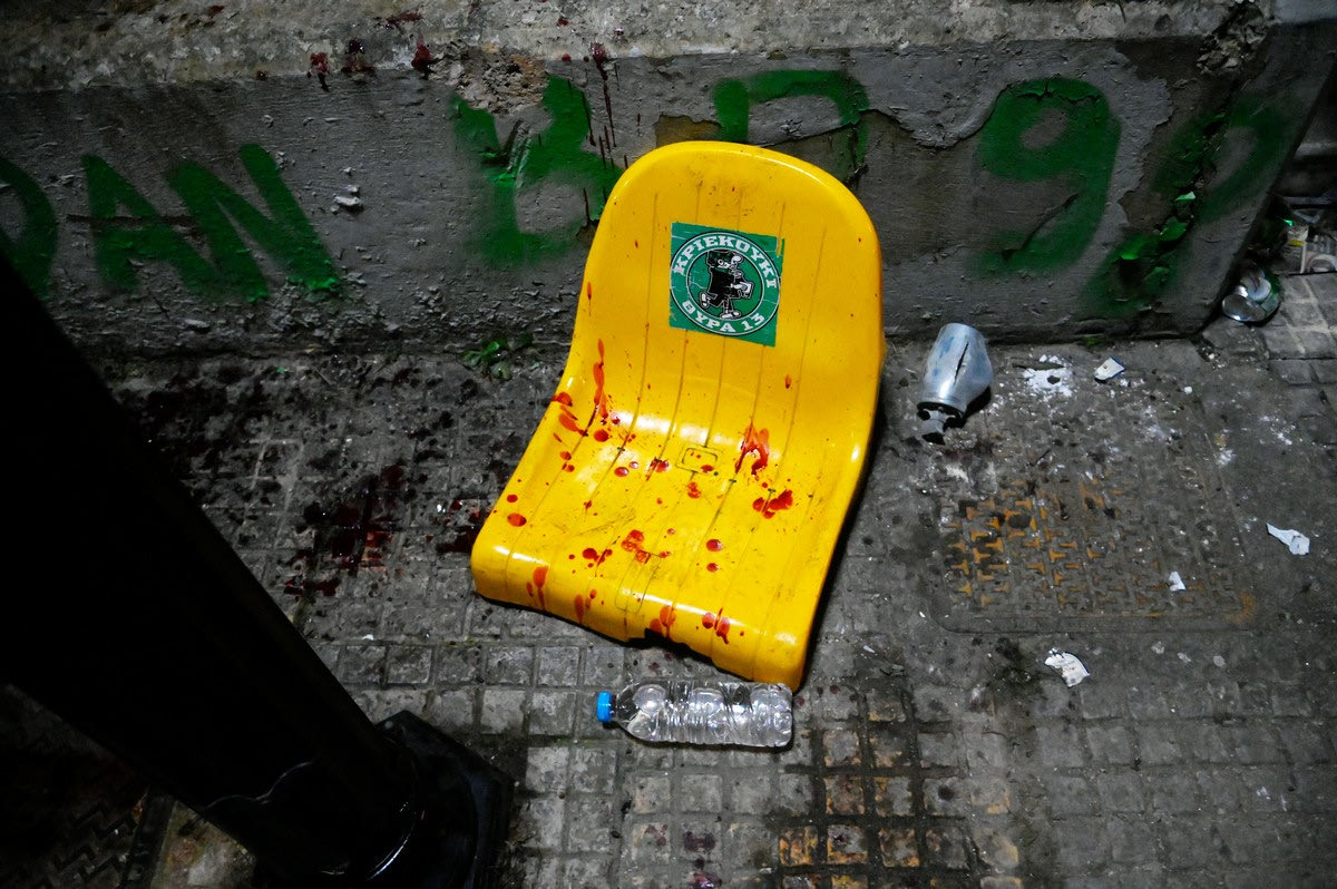 Ενδεικτικό της άσχημης κατάστασης που δημιουργήθηκε είναι ένα ματωμένο κάθισμα που βρέθηκε έξω από το κλειστό του Αγίου Θωμά.