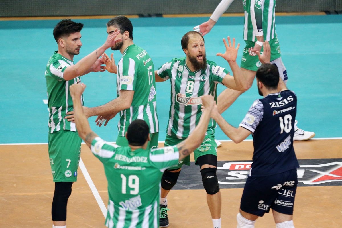 Ο Ολυμπιακός προηγήθηκε με 2-1 σετ, αλλά ο Παναθηναϊκός έκανε την ανατροπή, επικράτησε 3-2 σετ και κατέκτησε το Λιγκ Καπ. Δείτε τον πόντο, με τον οποίο οι πράσινοι έκλεισαν το παιχνίδι στο τάι-μπρέικ.