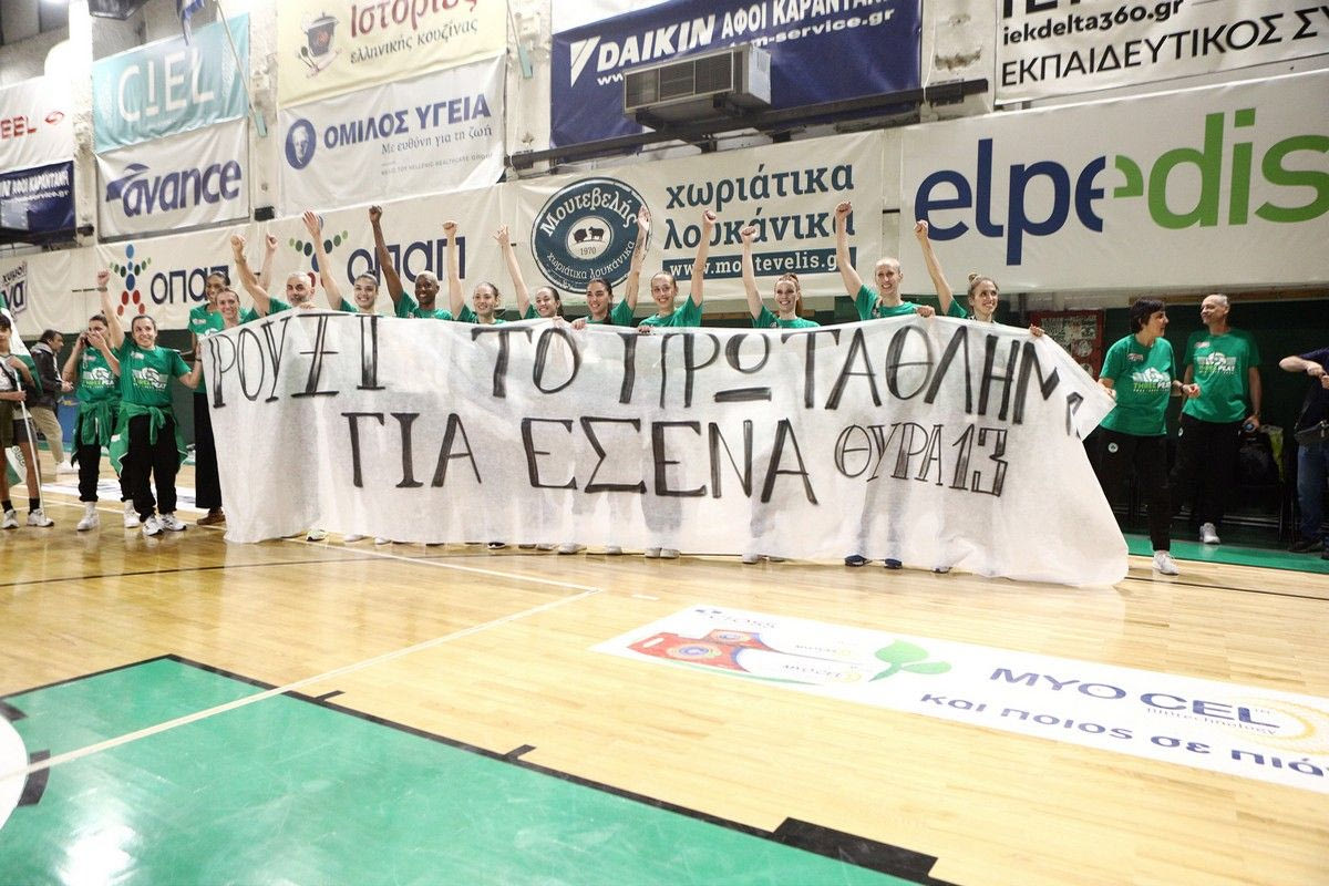 Σύσσωμη η αποστολή των πράσινων μετέβη στο “Παύλος Γιαννακόπουλος” για να γιορτάσει την μεγάλη βραδιά, με τις αθλήτριες της ομάδας να αφιερώνουν την κατάκτηση της Volley League στην αδικοχαμένη εμβληματική αρχηγό, με ένα συγκινητικό πανό και με τις γροθιές τους υψωμένες στον αέρα.