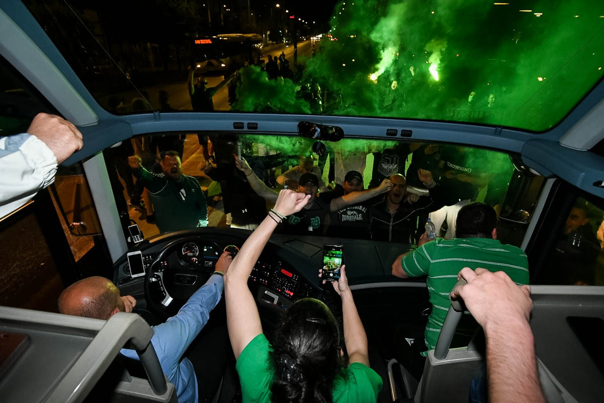 Οπαδοί του Παναθηναϊκού σταμάτησαν την αποστολή της ομάδας βόλεϊ γυναικών στην πορεία της για τη Λεωφόρο Αλεξάνδρας και αποθέωσαν τις πράσινες.