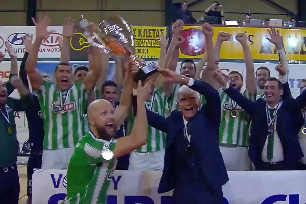 Ο Άξελ Γιάκομπσεν όπως συνηθίζει μετά από τίτλους που κατακτά ο Παναθηναϊκός ξύρισε το κεφάλι του πριν από την απονομή του τροπαίου.