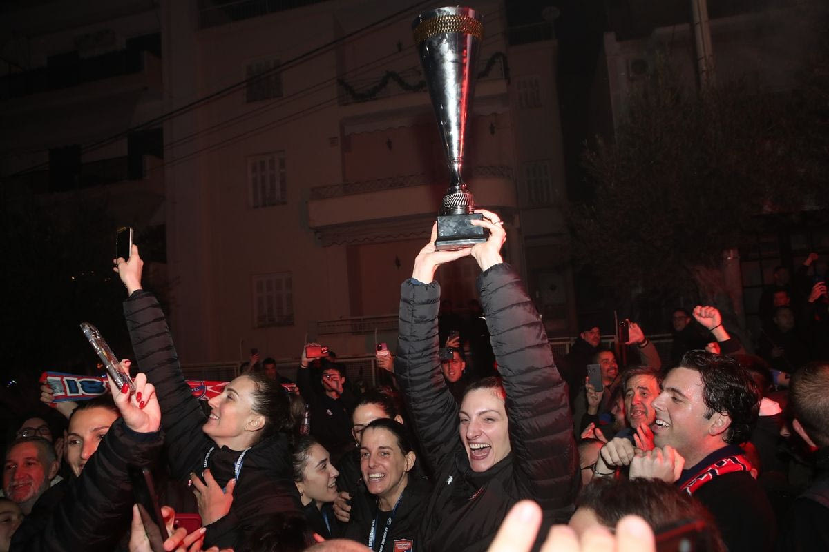 Η νύχτα έγινε μέρα στη Νέα Σμύρνη, με τον κόσμο να στήνει γιορτή και να υποδέχεται τις θριαμβεύτριες του Πανιωνίου Betsson για την κατάκτηση του Super Cup βόλεϊ.