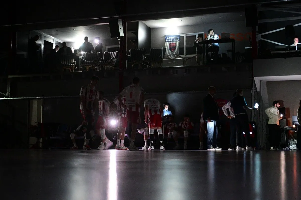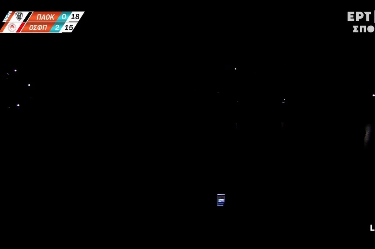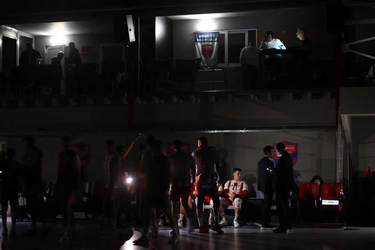 Με το σκορ στο 2-0 υπέρ του Ολυμπιακού και τον ΠΑΟΚ να προηγείται στο τρίτο σετ με 18-15, διακόπηκε το ρεύμα στο γήπεδο.