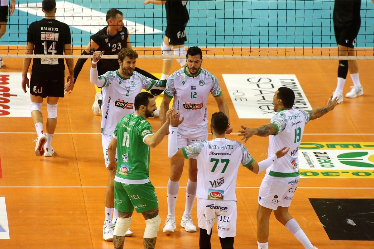 Ο Παναθηναϊκός πανηγύρισε την τέταρτη φετινή του νίκη στο Παλατάκι με αντίπαλο τον ΠΑΟΚ μετά τις τρεις σε κανονική διάρκεια και playoffs της Volley League ανδρών.