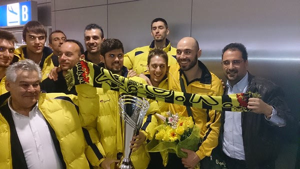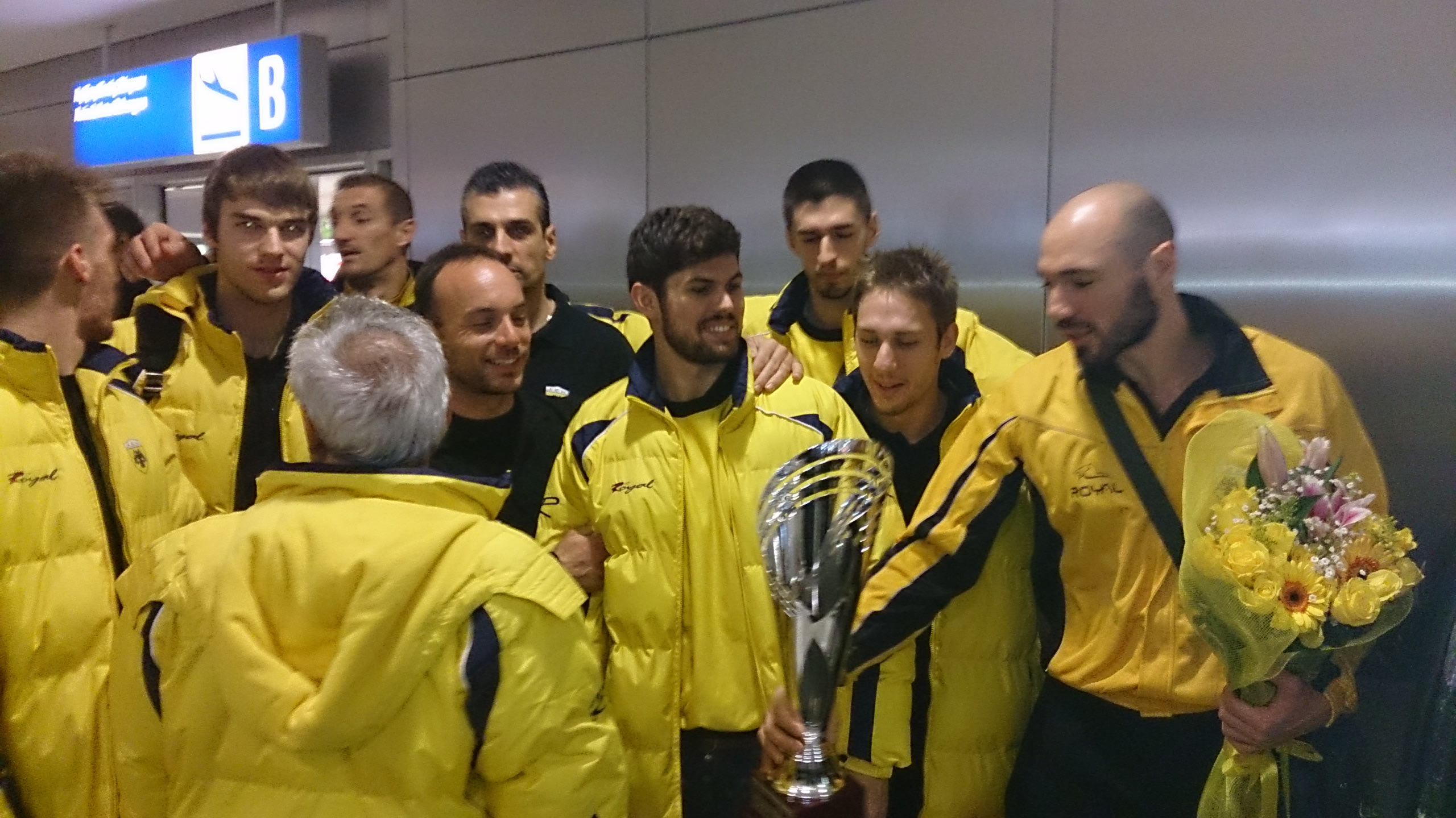 Στο “Ελευθέριος Βενιζέλος” την υποδέχθηκαν δεκάδες φίλοι της, αποθεώνοντας τους παίκτες και τον προπονητή της Ένωσης.