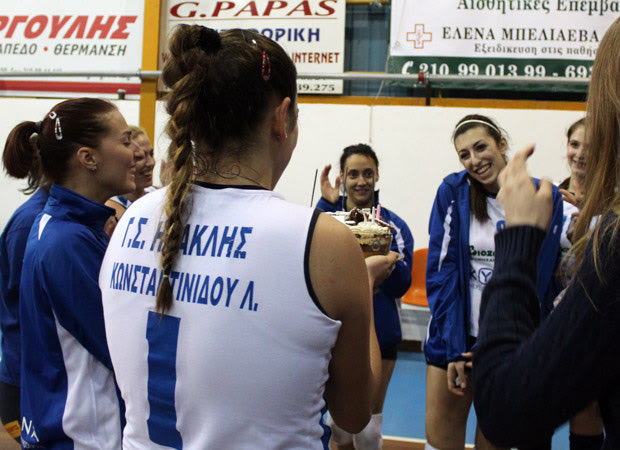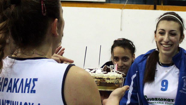 Μια γλυκιά έκπληξη επιφύλασσαν στη νεαρή ακραία οι συμπαίκτριές της, καθώς μετά τη λήξη του αγώνα και τη νίκη της ομάδας του Ηρακλή (3-1 σετ), έκανε την εμφάνισή της μια τούρτα γενεθλίων.